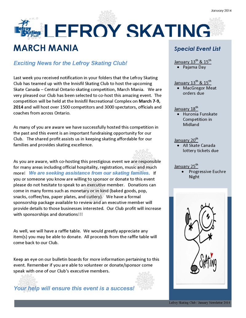 Reminder that Monday February 17th is Family Day. There will be NO Skating.:)